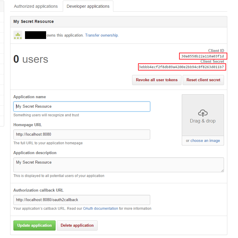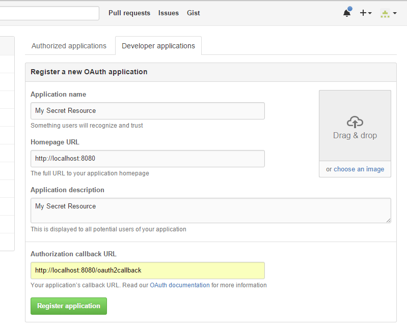 The application description is displayed to all potential users of your application. The callback URL is the public URL with a callback path: http://localhost:8080/oauth2callback that gets called by GitHub after successful authorization.